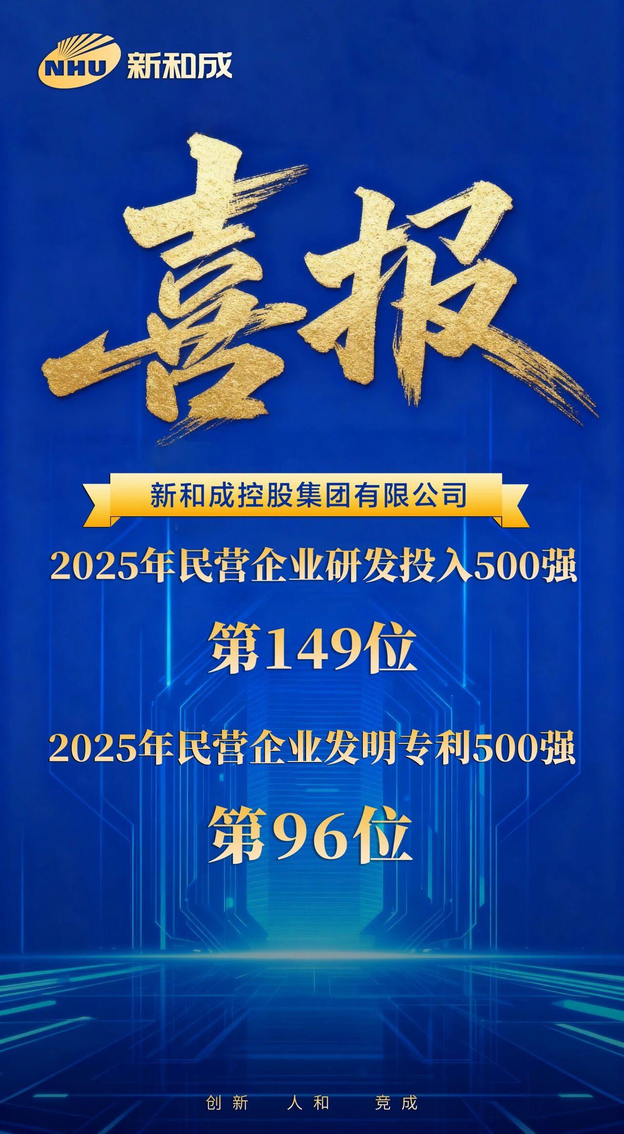 近日,全國工商聯(lián)發(fā)布“2025民營企業(yè)發(fā)明專利500家”“2025民營企業(yè)研發(fā)投入500家”榜單,新和成控股集團再次榮登雙榜。